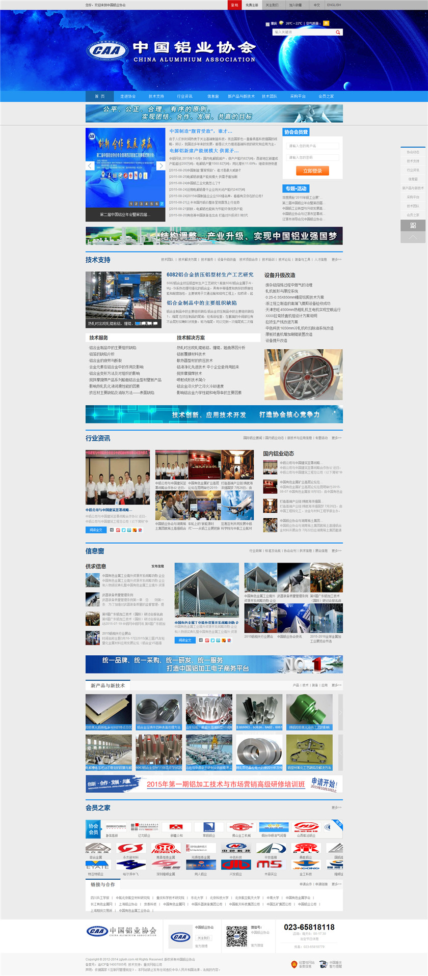 Project Description 中国铝业协会是由中国国内主要从事铝合金铸造、板、带、箔、管、棒、型材、锻件等企业组成的行业协会组织,协会由国内具有一定规模和影响力的企业发起,已有三百多家会员企业,目前还有很多企业踊跃希望加入,协会现有会员企业年销售额1000多亿元人民币,协会会员企业分布在国内华东、华南、西南、环渤海、东北、胶东半岛等中国经济活跃地区;产品涵盖航空航天、兵器装... Official website address 合肥http://www.caa2014.com I want to share