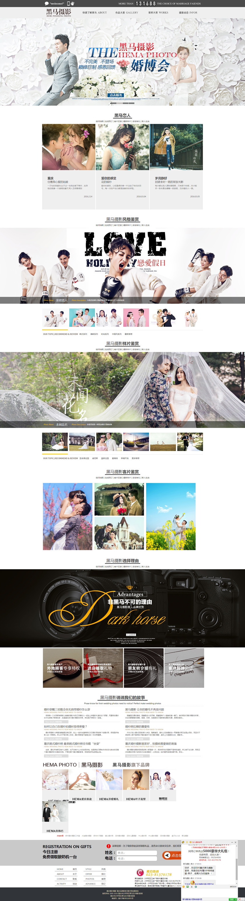 Project Description 黑马摄影,把每一对新人幸福梦想当成毕生的追求和责任,带着一对对新人的支持和厚爱,不断创新摄影风格,完善服务理念。无论从服务,作品,体验,我们虽然不能说100%没有缺陷,但我们有100%追求完美的心 Official website address 合肥http://www.hemaphoto.cn I want to share